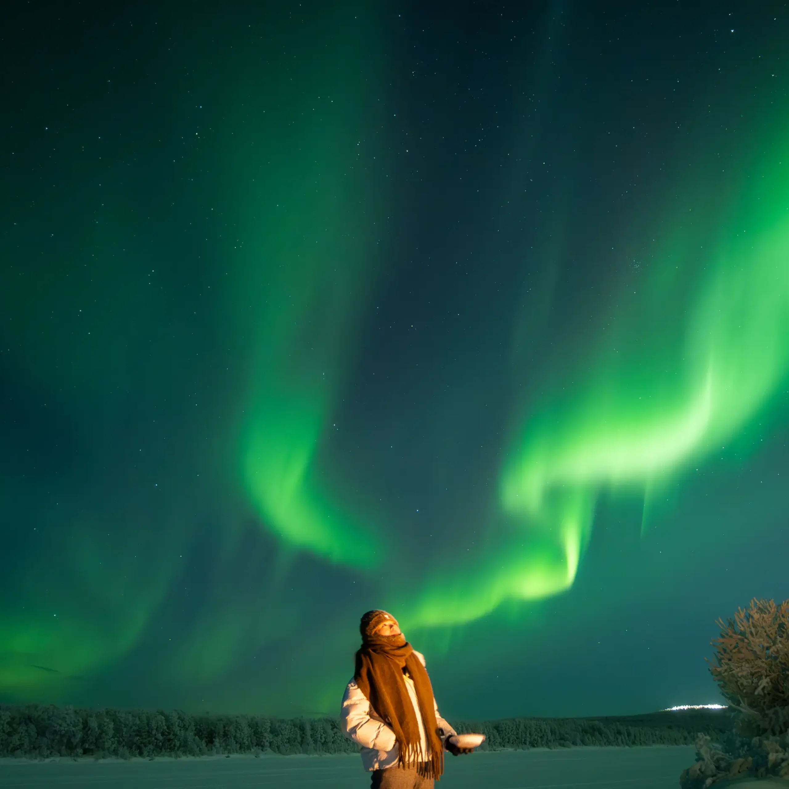 While waiting for the lights to appear, you’ll enjoy some chocolate and juice under the stars, surrounded by the peaceful Lappish wilderness.