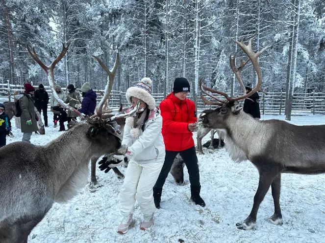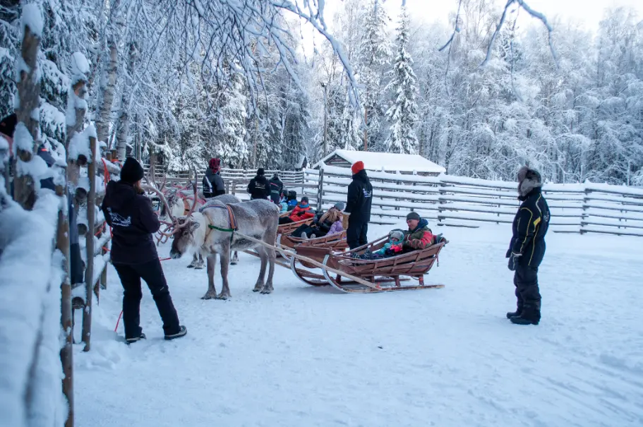 Step into the magical world of Lapland with a visit to a traditional reindeer farm. Meet friendly local herders and get up close to their beloved reindeers. You’ll have the chance to feed the reindeer, take beautiful photos, and enjoy an unforgettable sleigh ride (approx. 5 min) through the snowy landscape.