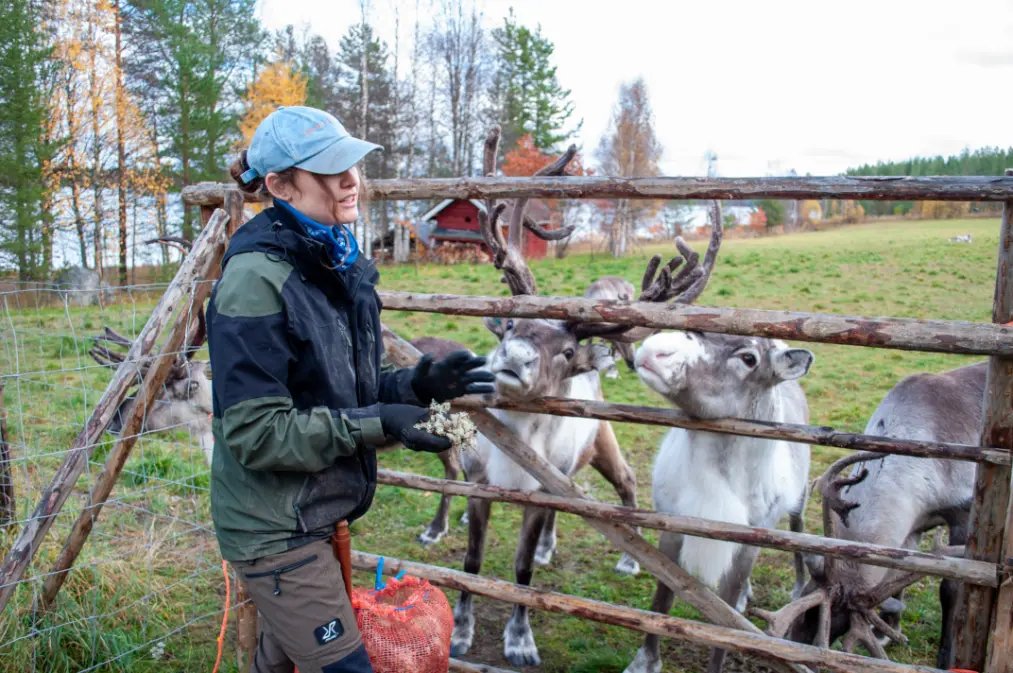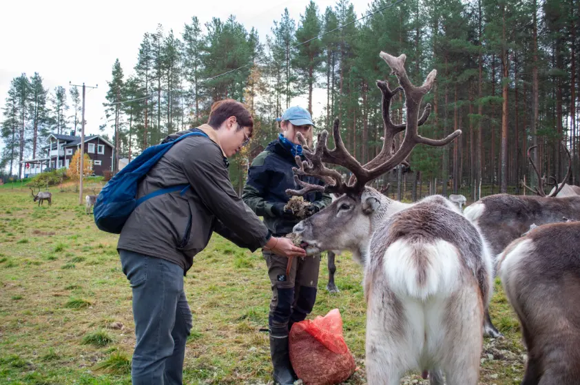Enter the fence and enjoy the experience of feeding the reindeers up close.