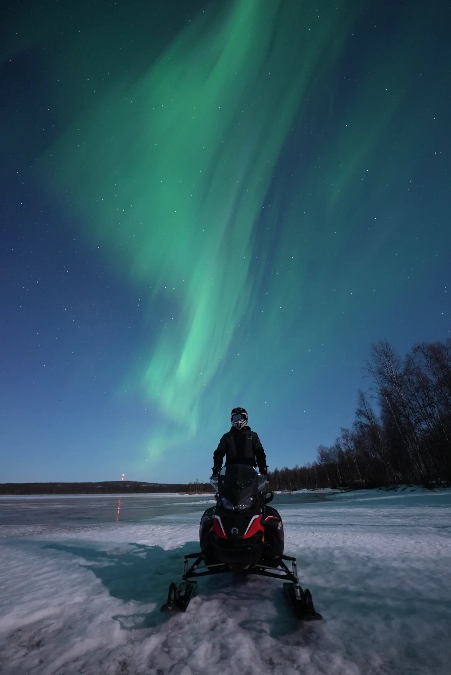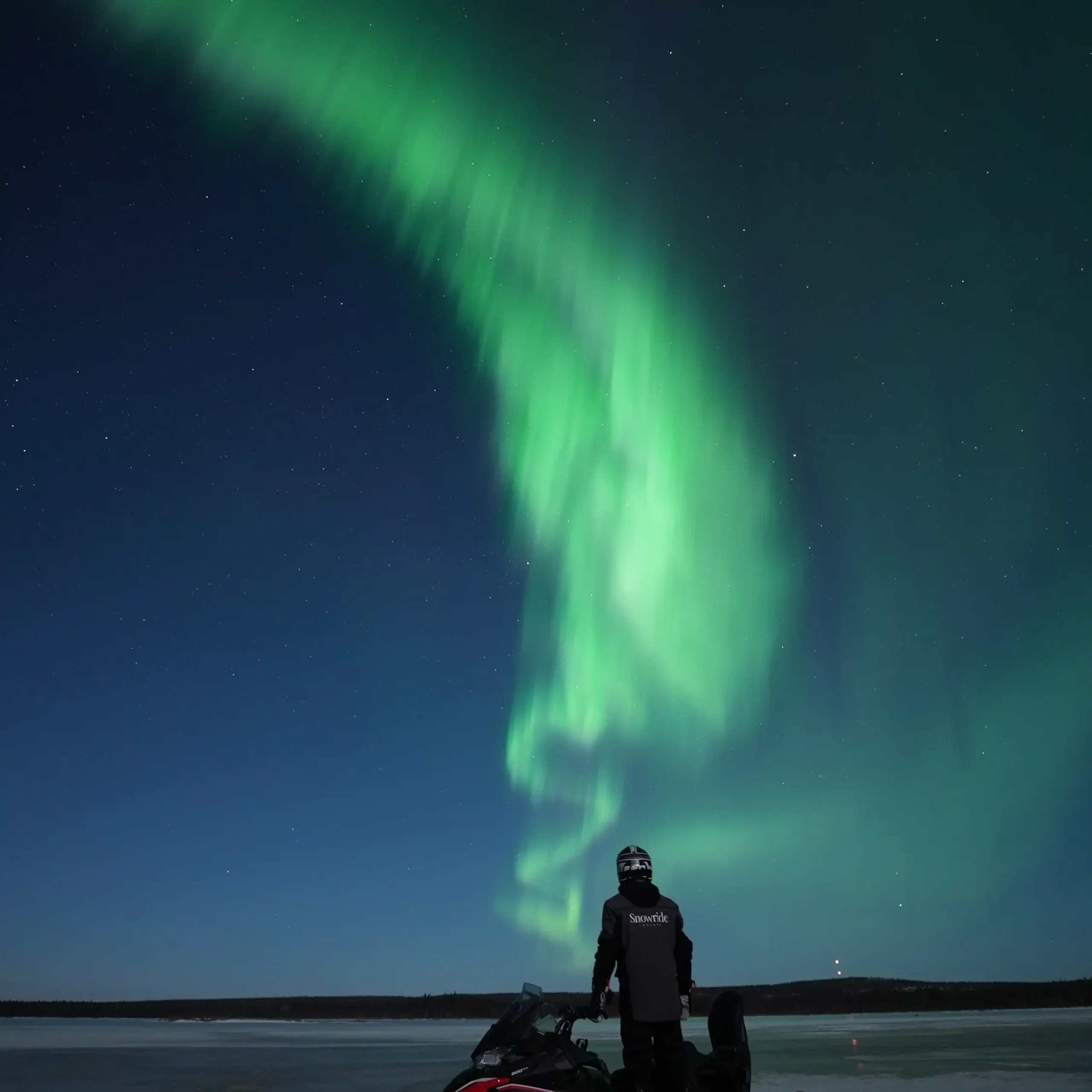 As the snowmobiles glide through the darkness, we’ll stop at a peaceful, open spot — the perfect place to watch the stars and, with a bit of luck, see the Aurora Borealis dance across the sky.