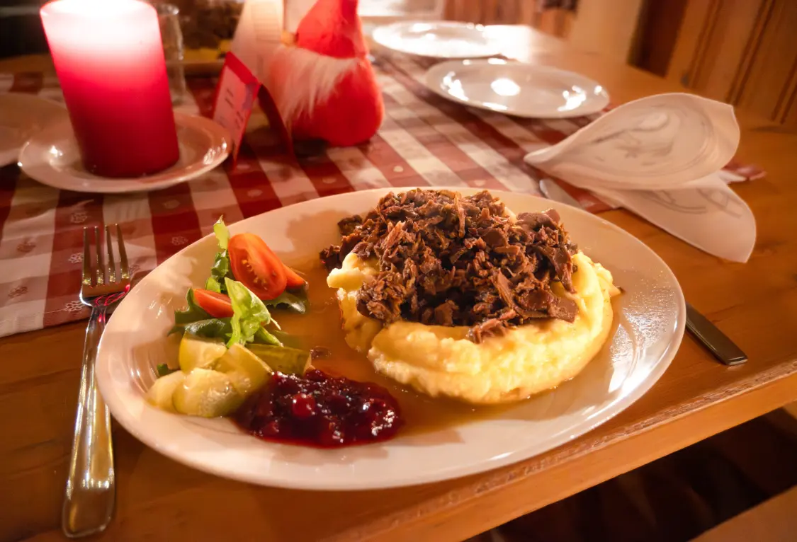 Enjoy a traditional Reindeer dinner in a cozy setting